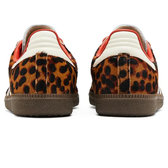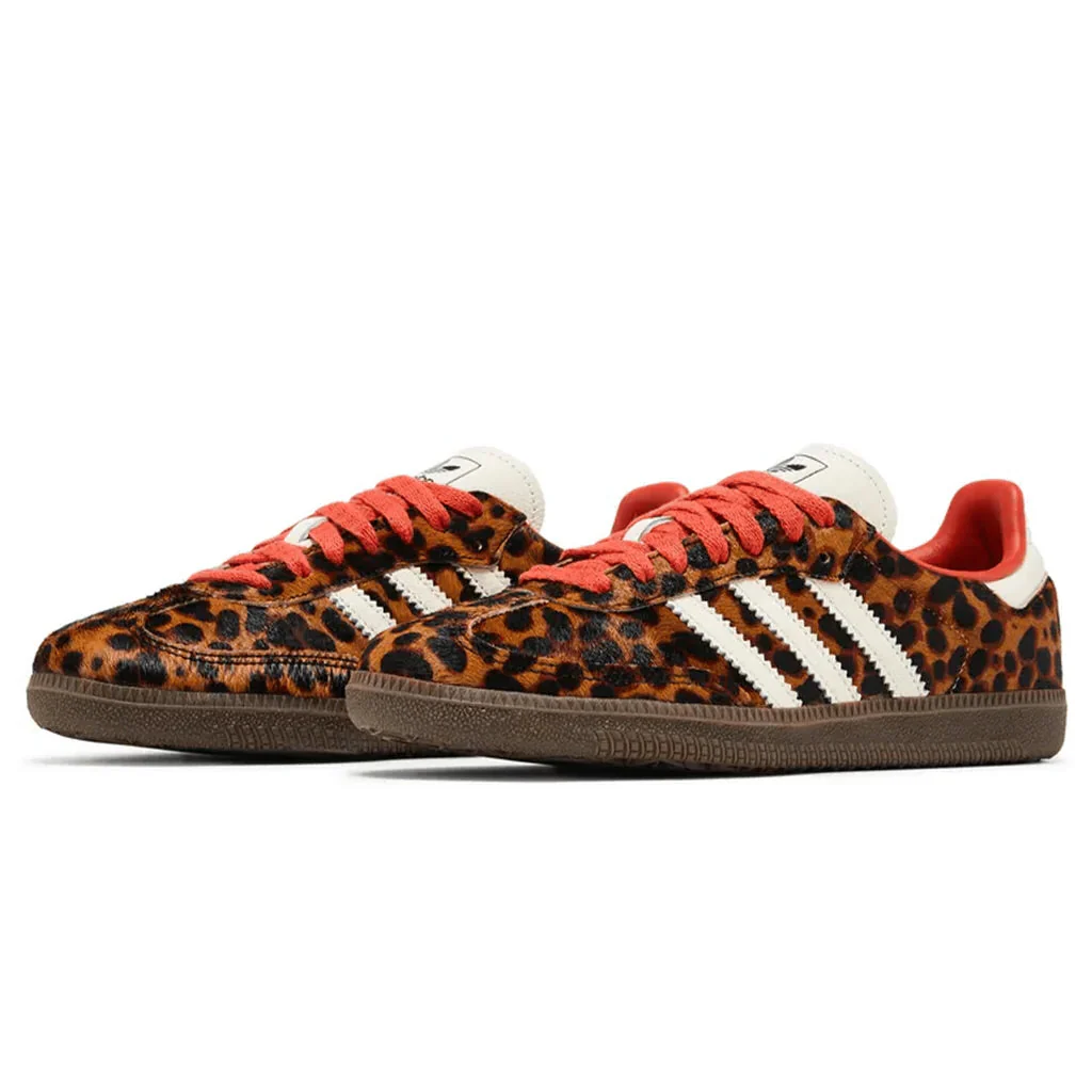 Description: The adidas Samba OG Wmns ‘Leopard Pack – Preloved Red’ brings a bold and stylish twist to the iconic Samba silhouette. Featuring a rich Preloved Red suede upper accented with leopard-print Three Stripes, this edition merges heritage design with modern fashion sensibilities. The signature T-toe overlay and gum rubber outsole ensure durability and grip, while the soft leather lining enhances comfort for all-day wear.