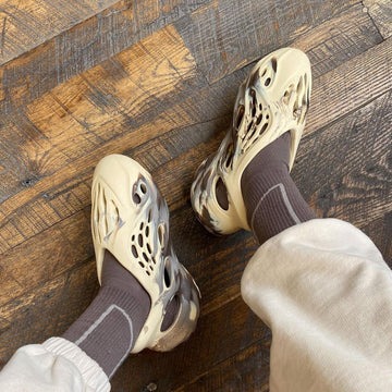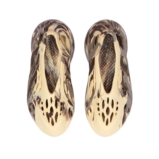 Description: The adidas Yeezy Foam Runner ‘MX Cream Clay’ enlivens Kanye West’s amphibious slip-on with a swirling blend of brown and grey. The neutral hues appear to have been painted on the surface of the cream-colored one-piece upper, crafted from a combination of lightweight EVA and hydroponically produced algae. Ventilation ports of varying sizes ensure breathable comfort, while the sculpted design keeps the foot locked in place.