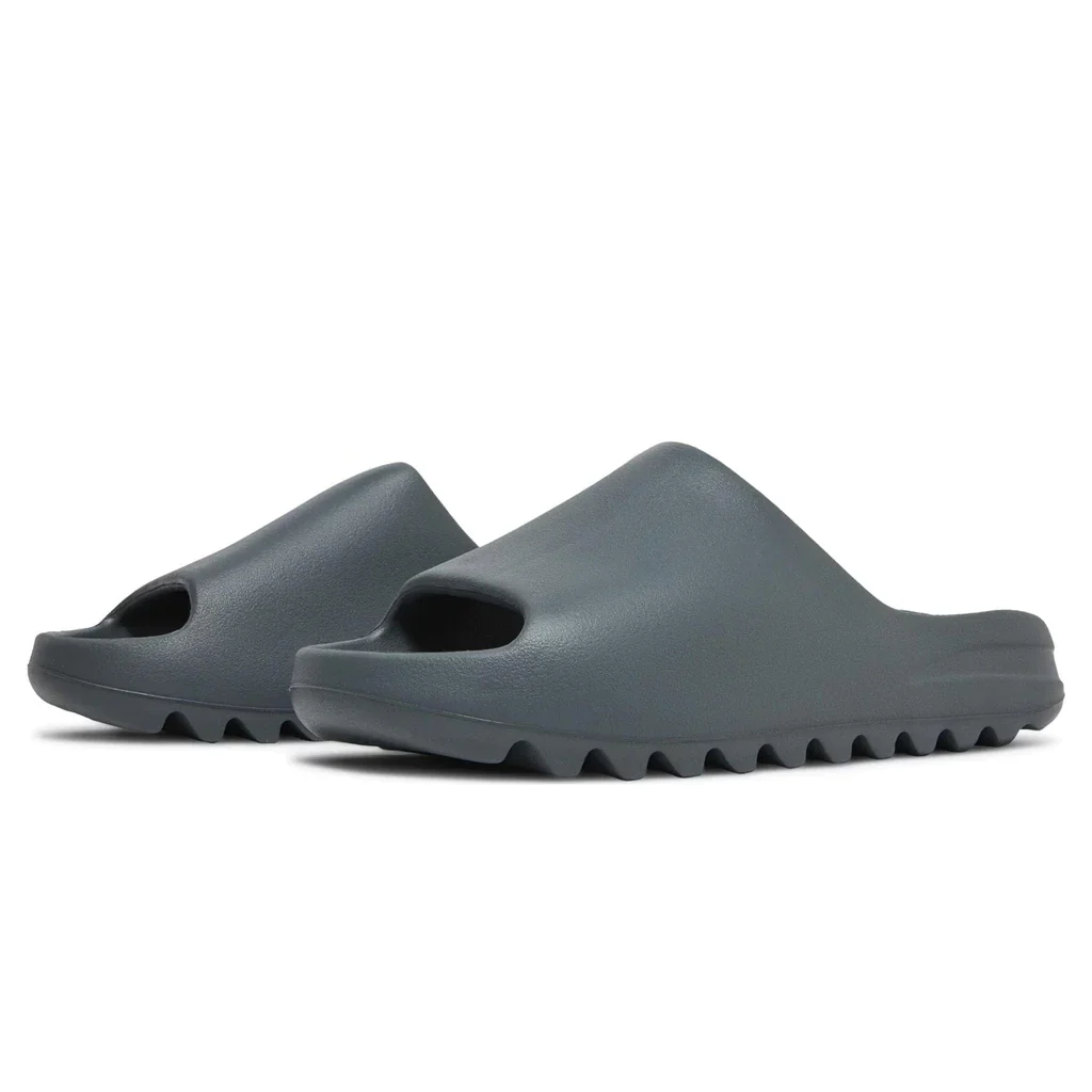 Description: The adidas Yeezy Slide ‘Slate Grey’ pairs a minimalist design with a tonal finish in a subdued shade of grey. Built with a single piece of injected EVA foam, the slip-on boasts a wide strap upper that entirely covers the top of the foot. Exterior branding is limited to adidas’ three stripes logo, debossed on the soft top lay of the footbed. Underfoot, the outsole features a series of horizontal grooves for improved cushioning and traction.